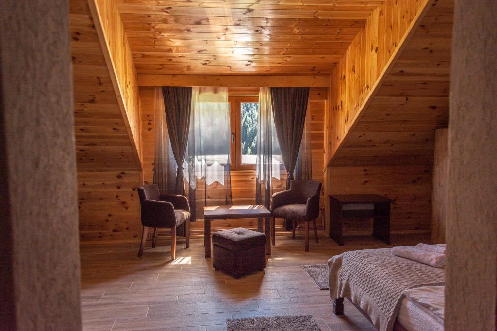 Posebnu pogodnost ove vikendice predstavlja kamin. Ova vikendica sa zasebnim ulazom ima jednu dnevnu sobu, dve zasebne spavaće sobe i dva kupatila sa tušem i fenom za kosu. U potpuno opremljenoj kuhinji su obezbeđeni ploča za kuvanje, frižider i kuhinjsko posuđe. Vikendica nudi zvučno izolovane zidove, mini-bar, aparat za čaj i kafu, flat-screen TV, kao i pogled na jezero. Smeštajna jedinica poseduje četiri kreveta.