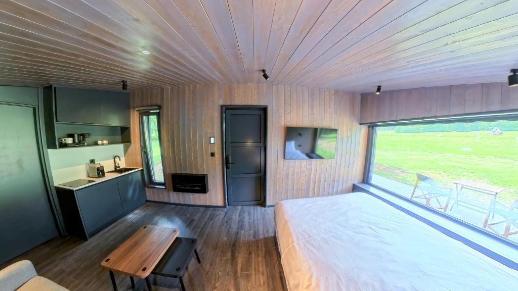 Guests will have a special experience as this chalet provides a fireplace. This chalet includes 1 living room, 1 separate bedroom and 1 bathroom with a shower and free toiletries. The well-equipped kitchen has a stovetop, a refrigerator, kitchenware and a tea and coffee maker. Boasting a terrace with mountain views, this chalet also offers soundproof walls and a flat-screen TV with streaming services. The unit has 2 beds.